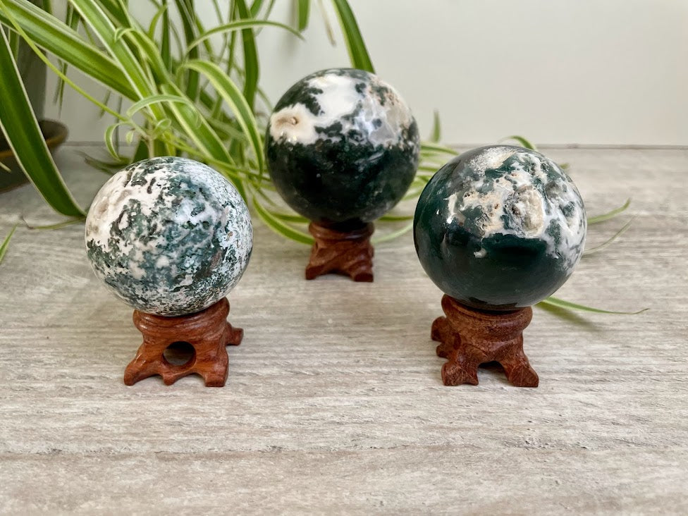 With varying patterns of mossy green cascading over beautiful whites with inclusions of grey, brown or blue. You will be blown away by the various caverns in these spheres! It's almost as if you're holding a miniature Earth in your hands, nurturing it, the way the Earth Mother nurtures us.